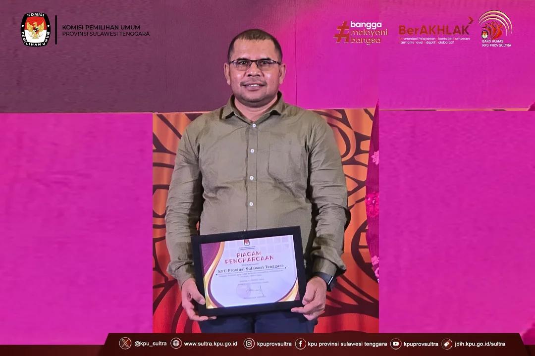 Penghargaan bergengsi ini diserahkan langsung oleh Ketua KPU RI, Mochammad Afifuddin, kepada Amiruddin, Anggota KPU Provinsi Sultra Koordinator Divisi Sosialisasi, Pendidikan Pemilih, Partisipasi Masyarakat, dan Sumber Daya Manusia (Parmas dan SDM), di Jakarta pada Sabtu, 18 Oktober 2025.